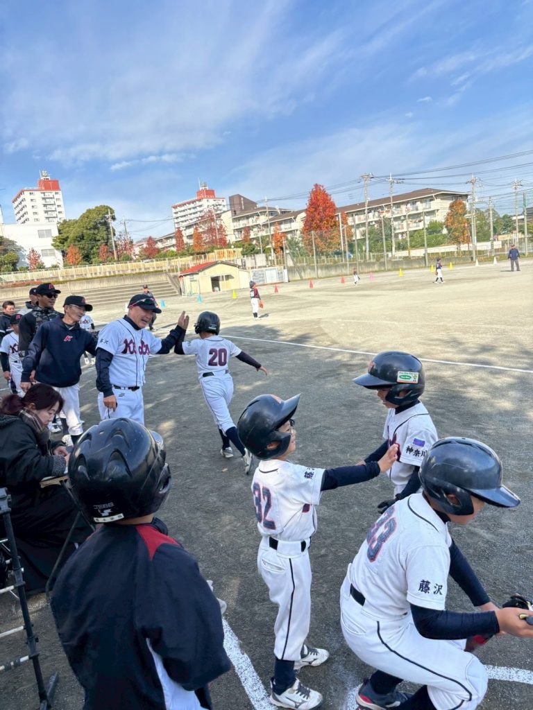 初回に肘を怪我しながらも4年生が豪快な3ランホームランで先制し、チーム全員で大盛り!!
