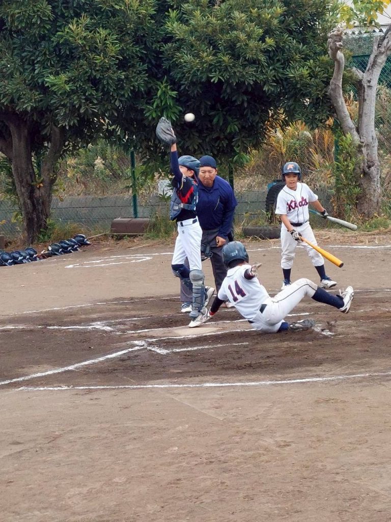善行リーグB戦、湘南シャークスさんとの試合がありました。キッズは先攻です!