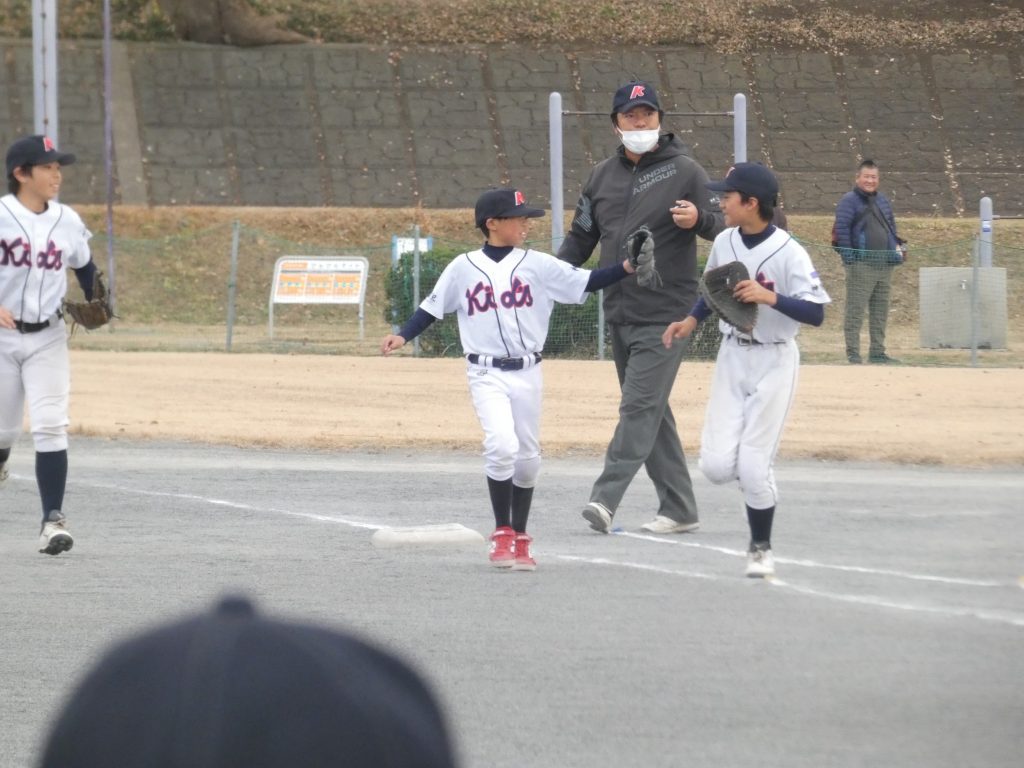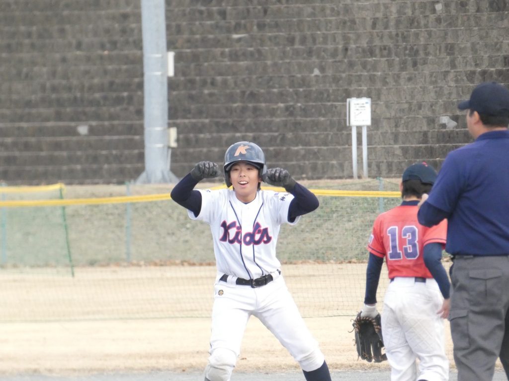 先攻のキッズ、初回はヒットと隙を見逃さない走塁で5得点!幸先の良いスタートとなりました。