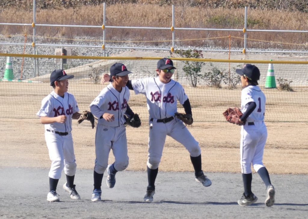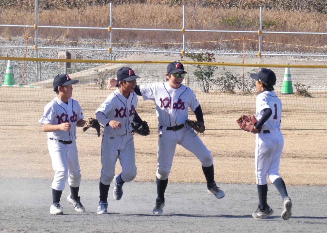 準決勝に引き続き、先発を任された投手が見事にバッターを打ち取っていきました。続く2番手の5年生ピッチャーも緩急をつけたピッチングで打ち取っていきました。ランナーが溜まったところで下位打線のヒットが続き得点を重ね、全員で18アウトを取り試合終了!